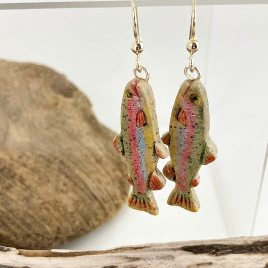 Rainbow Trout hand-painted earrings for fishing enthusiasts