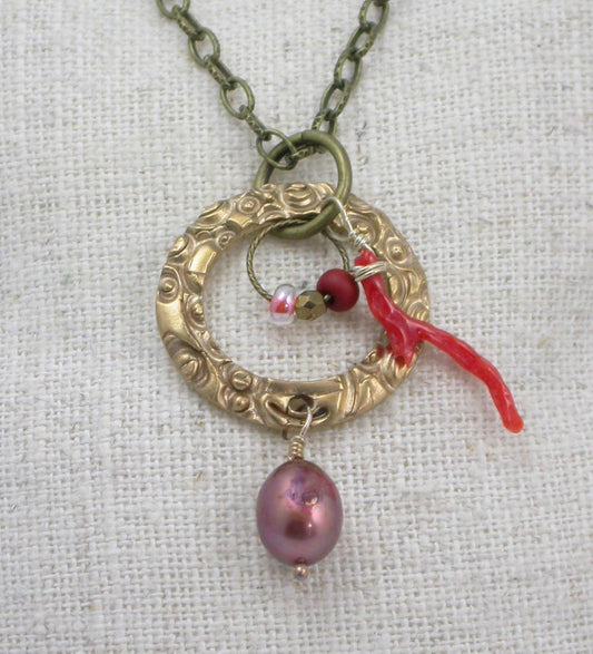 Circle Round! Bronze and Pearl Necklace