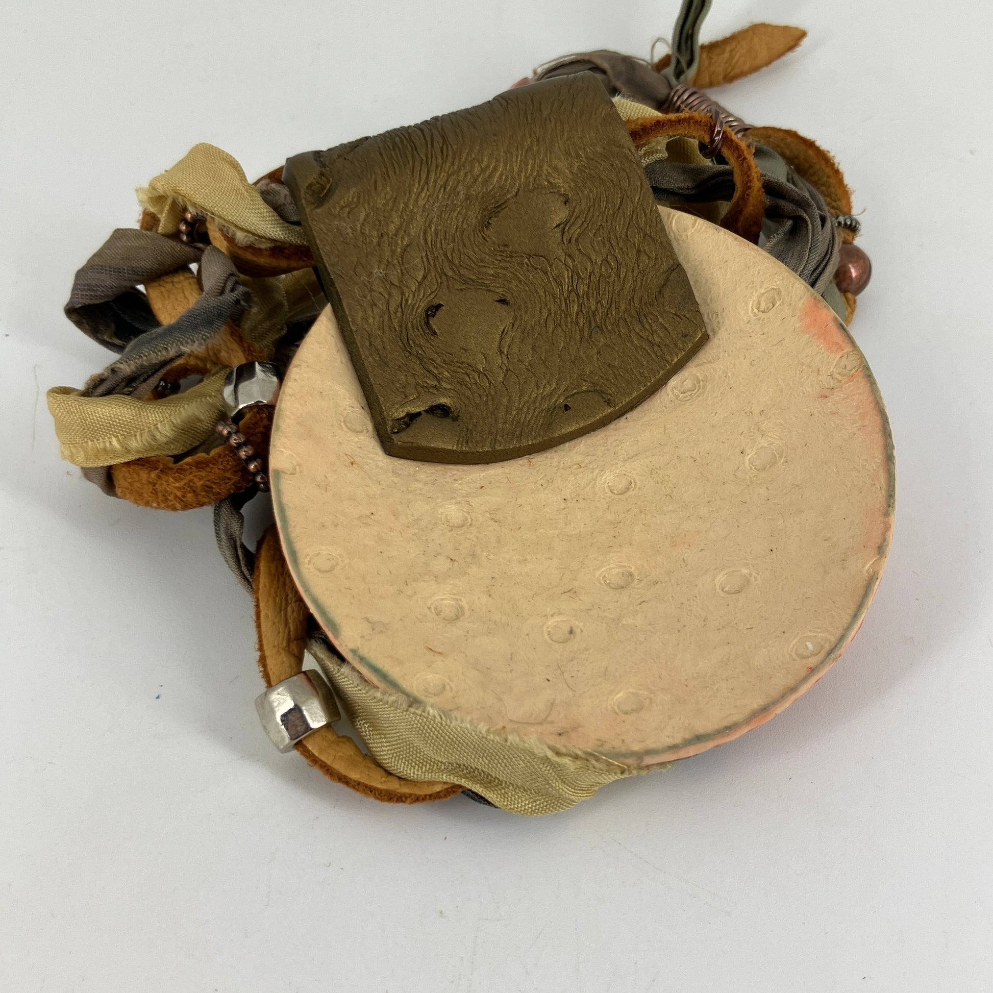 Handcrafted from dimensional shapes the pendants are large and perfect for a sweater! Each pendant is shaped in embossed designs and color-blended clay with a large bail. Beautiful antique looks. Even with their large presence these are very light weight and comfortable to wear necklaces.
